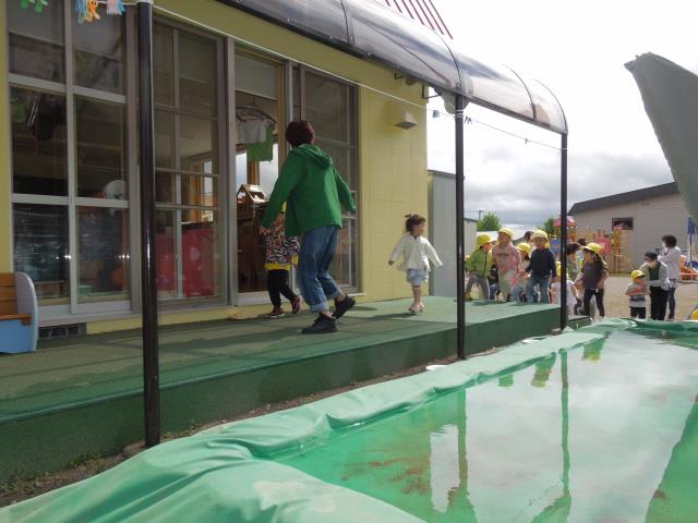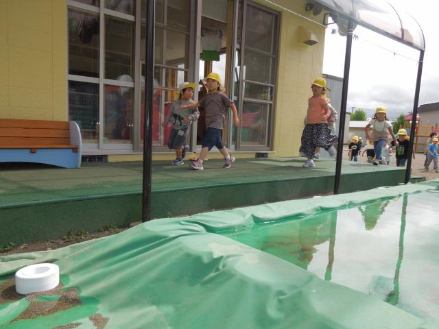 みんな速やかに園舎内へ避難。
