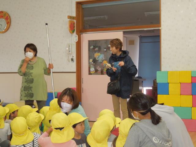 お誕生児の紹介、インタビュー、お歌、カードのプレゼントをしたあと、先生がマジックショーをしてくれました!!