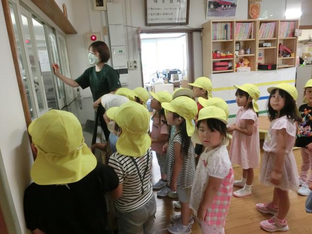 ビックリしてちょっぴり泣いてしまったお友だちもいましたが、全員が上手に避難する事が出来ていましたよ。
