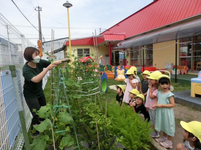 そしてなんと!すみれぐみさんからきゅうりのおすそわけもあり大喜びの子ども達!!
