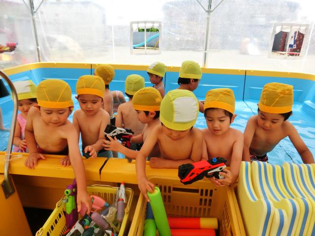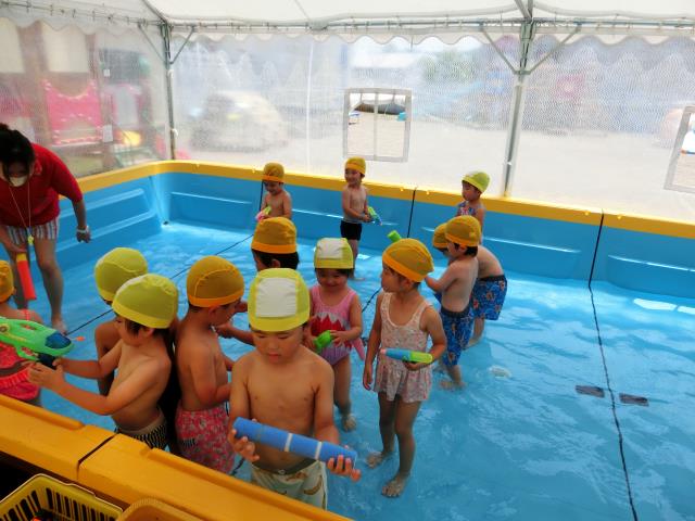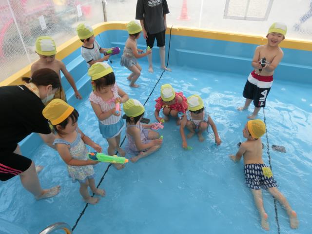 お約束の確認もいつもよりも真剣な顔で聞けており、水鉄砲などで楽しく遊びました。