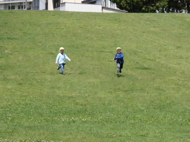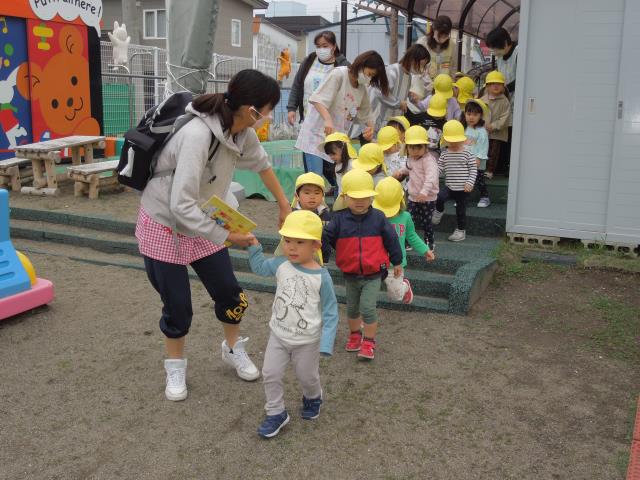 ”歩くのが上手になったら少し遠くの公園まで行こうね”とお約束をしていて、昨日行われた避難訓練でも上手に歩くことが出来ていたので、子ども達の念願が叶い、行くことができました!