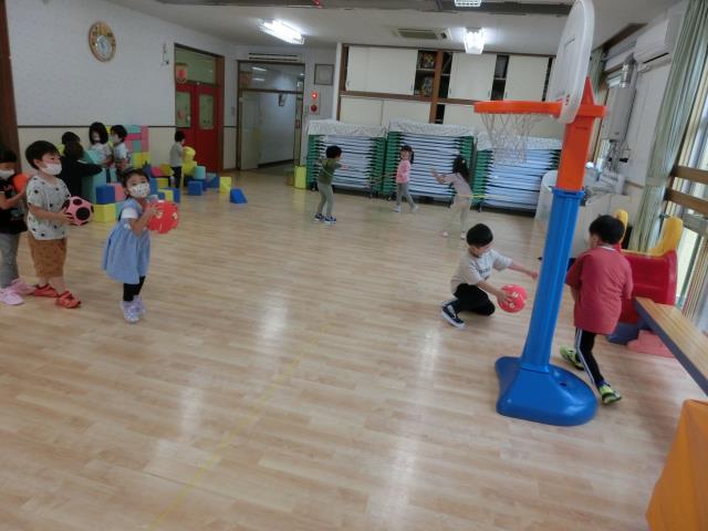 今日のさくらぐみは、ホール遊びを楽しんでいます。
