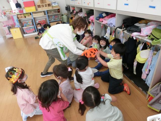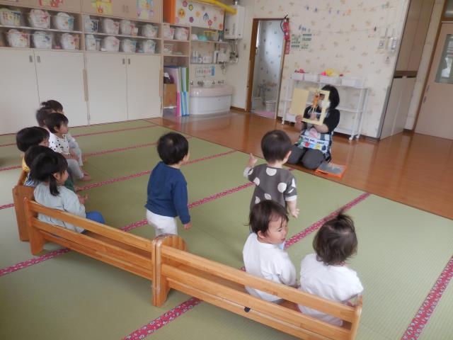 先生からの出し物はエプロンシアターで、かえるやヘビが出てくるお話でした。