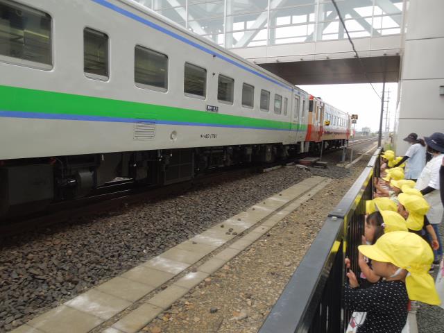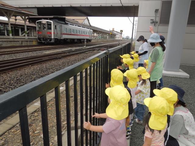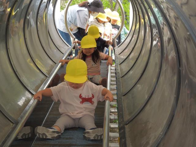 芸文ではローラー付き滑り台を何度も滑ったり、カラカラと鳴る音を楽しんだり、発車する汽車を見送ったり、広場にてみんなで走ったりと存分に楽しんできました。