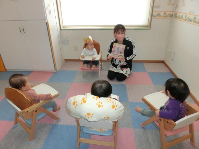 ひよこぐみは、4月生まれで先月お休みしていたお友だちのお誕生会をしています。