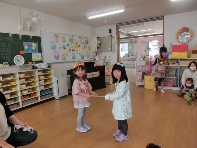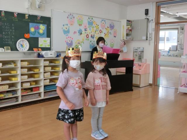 さくらぐみは、5月生まれのお友だちが3名いますが、1名欠席だったため、2名のお友だちのお祝いをしています。