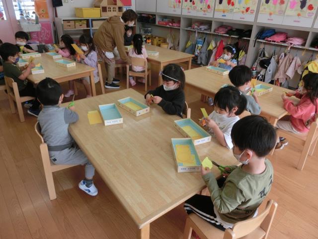 今日のさくらぐみは、5月の製作に取り組んでいます。