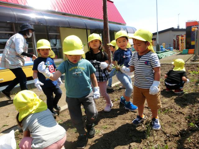 今日のちゅうりっぷぐみは、お天気が良かったので畑の草取りをしています!