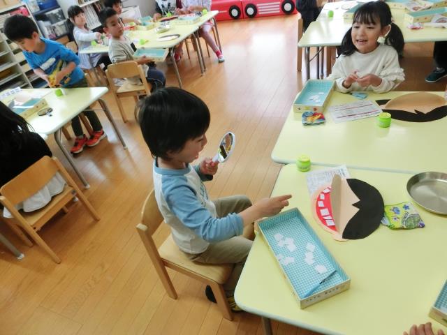 今日のすみれぐみは、6月の虫歯予防デーにちなんで、自分の口の中の製作をしました!!