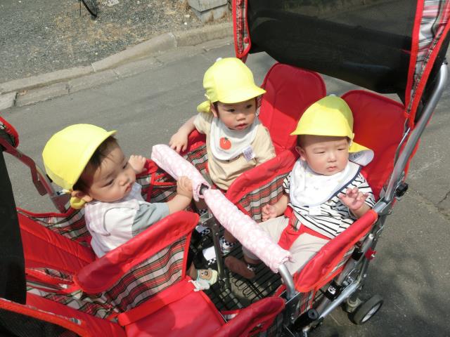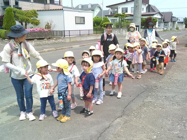 今日のひよこぐみは、園外保育で園まわりをお散歩しています。