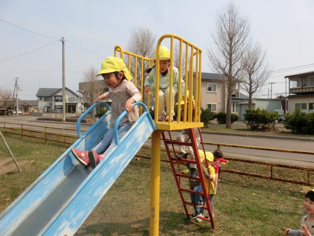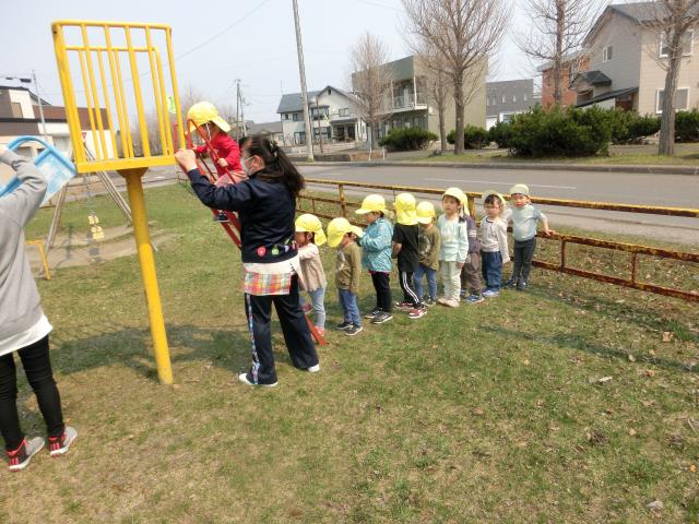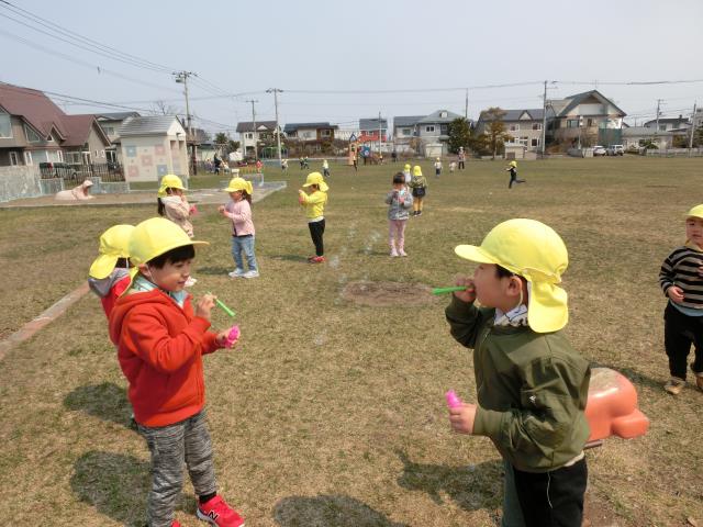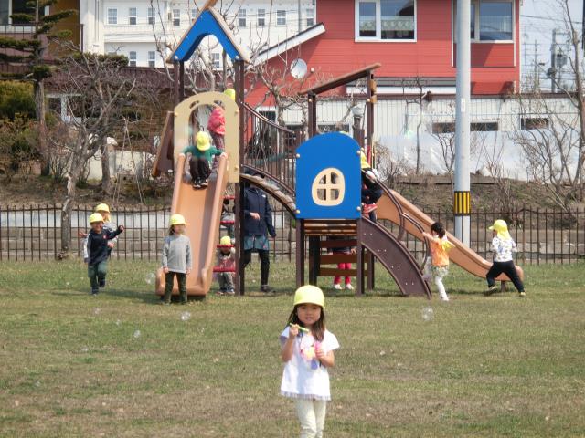 公園では、ブランコや滑り台に乗ったり、しゃぼん玉をして遊んだりしています。