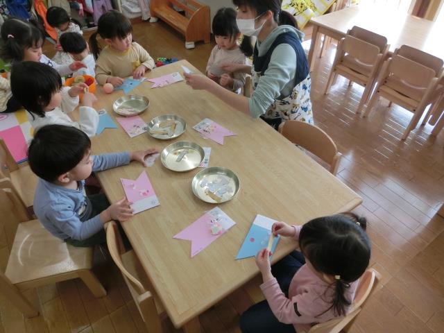 どのシールにするか選んだり、貼ったりするときに、とても楽しそうな表情で取り組んでいた子ども達です。