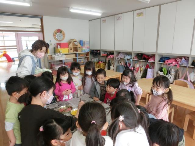 初めての感触に驚いて泣いてしまう子、不思議そうな顔をして見ている子、一人一人が様々な表情をしていました。