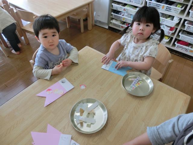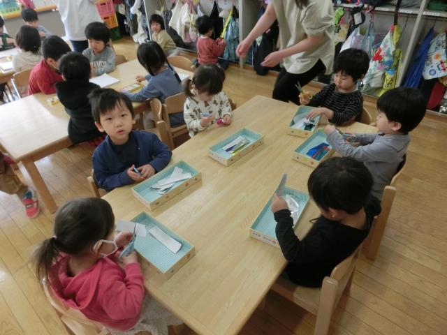昨日と今日のひよこぐみは、活動で初めての製作をしています!