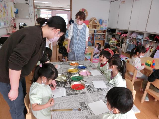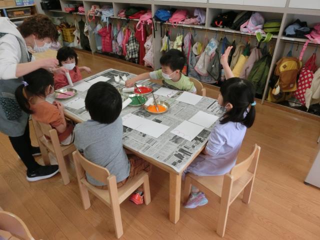 たんぽぽぐみは、2日間かけてこいのぼり製作に取り組んでいます。
