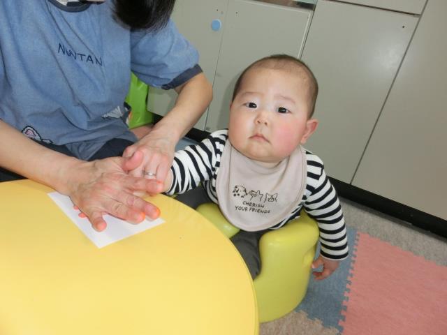 手形や足形をとる事に挑戦したひよこぐみさん。