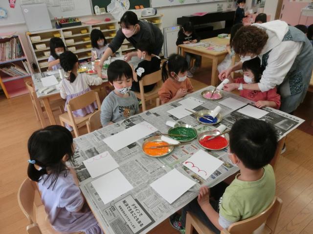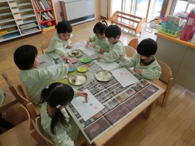 好きな色をそれぞれ選び、上手に押すことができていましたよ。
