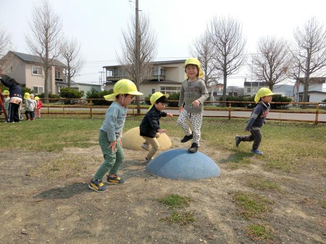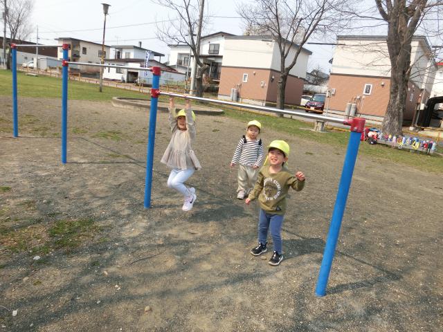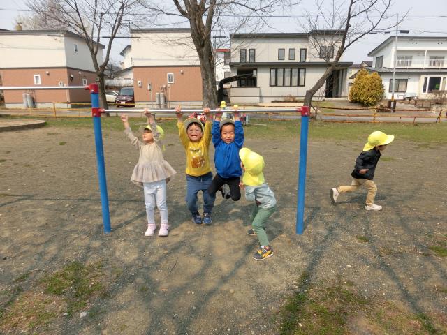 公園では草原をたくさん走りまわったり、滑り台や鉄棒などの遊具で遊んだり。