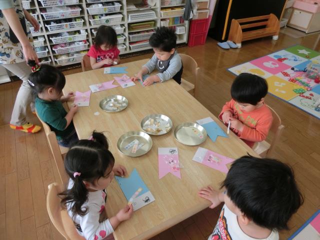今日のさくらぐみは、お部屋でこいのぼり製作をしています。