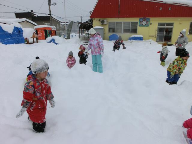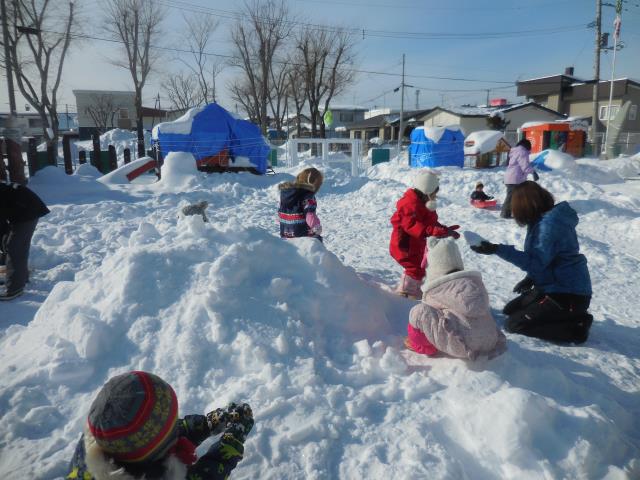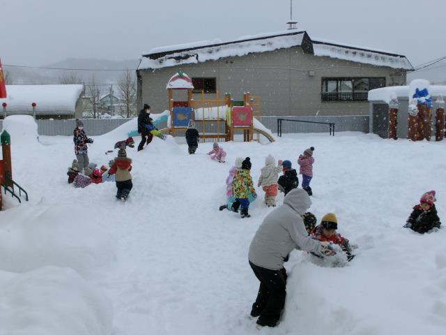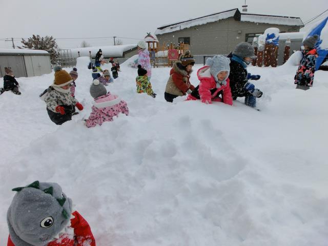 みんな雪あそびが大好きで喜んで遊んでいます。