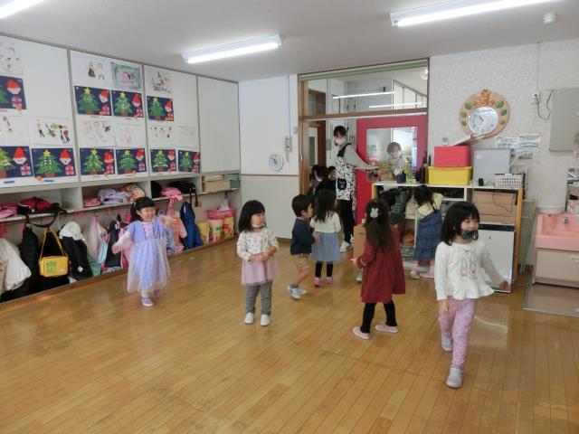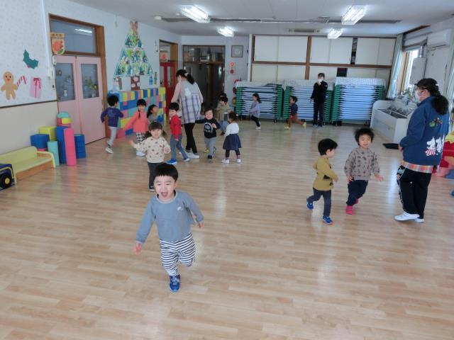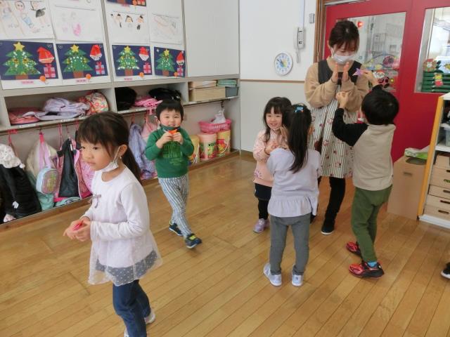 クリスマス会に向けてお遊戯の練習をした後、集団遊び「あぶくたった」を行いました。