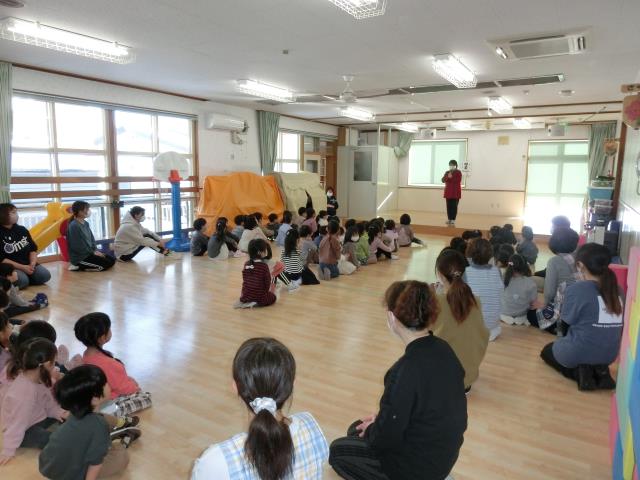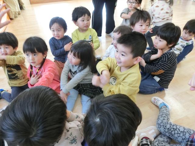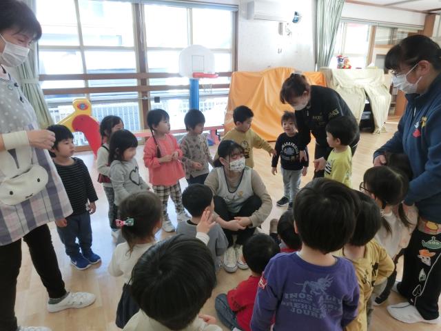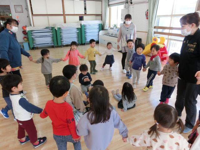 今日はひよこぐみ、つくしぐみ、たんぽぽぐみ、ちゅうりっぷぐみ、さくらぐみで交流会を行いました。
