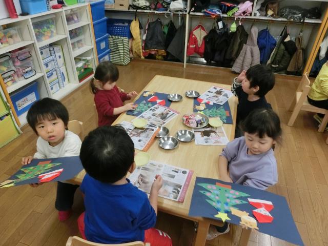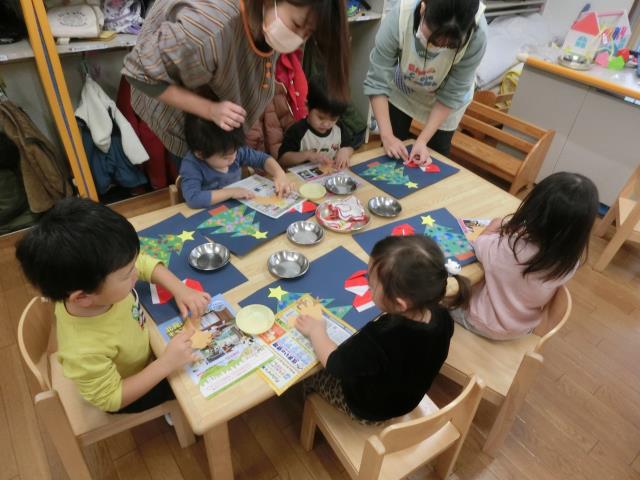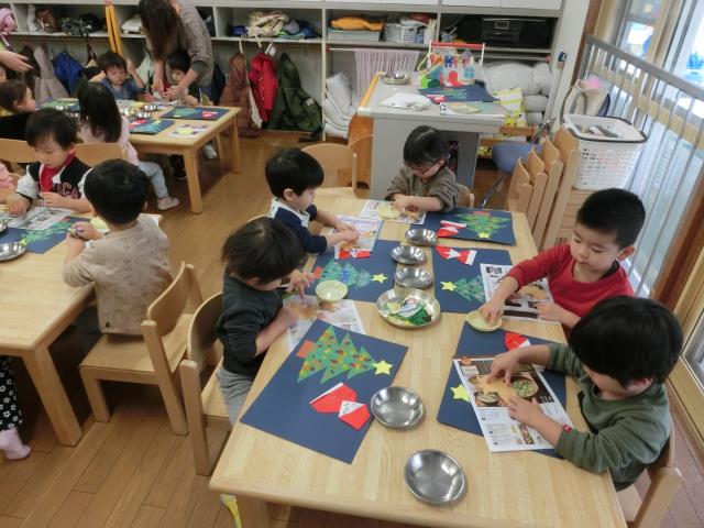 今日のたんぽぽぐみは、クリスマス製作を行っています。