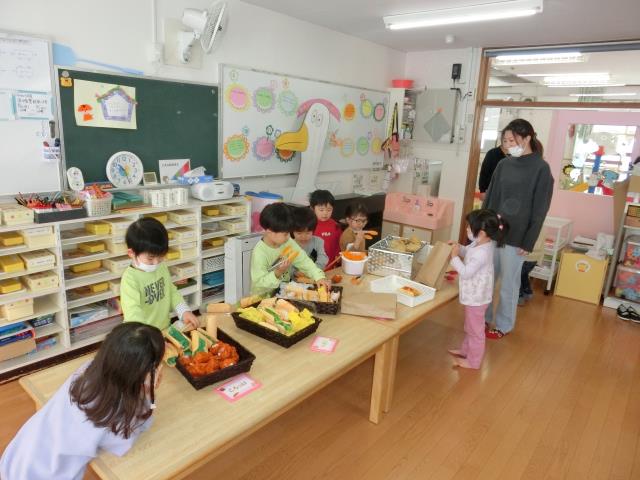 お店屋さんになりたい子も多く、交代しながら、それぞれなりきって楽しんでいました。