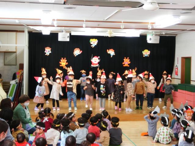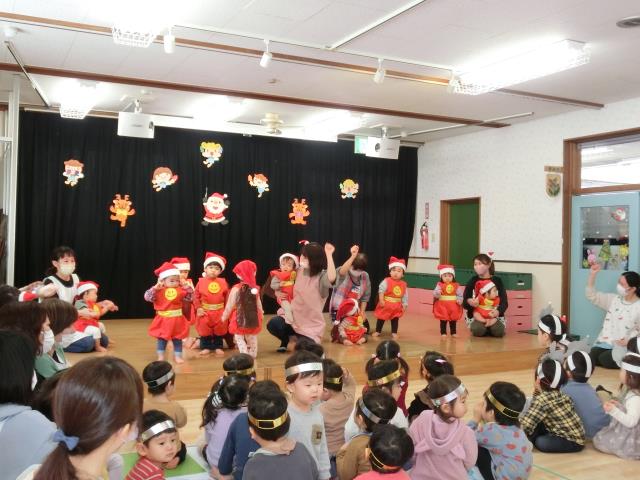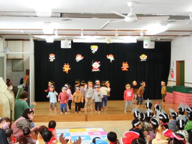 クリスマスの飾りなどで可愛く着飾った子ども達が、クラスごとにお遊戯・歌を発表しましたよ。
