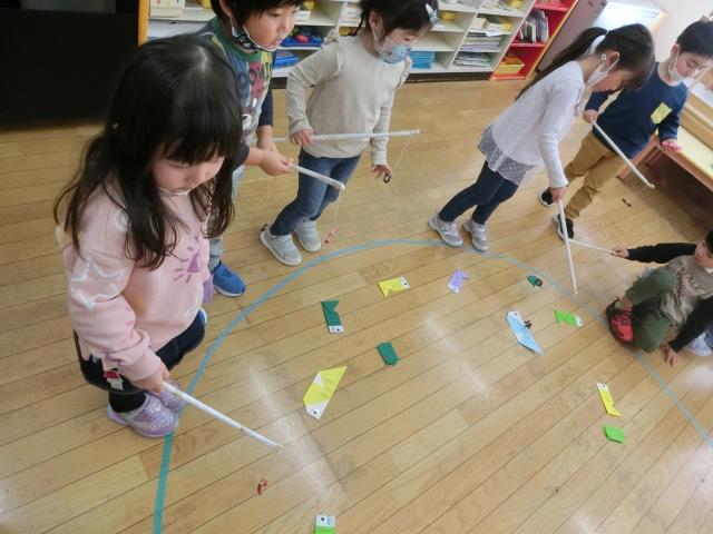 子ども達が大好きな手裏剣の宝探しと魚釣りをしました。