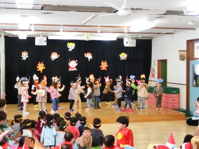 園長先生より新年の挨拶をして頂き、その後みんなで楽しくゲームをして過ごしています。