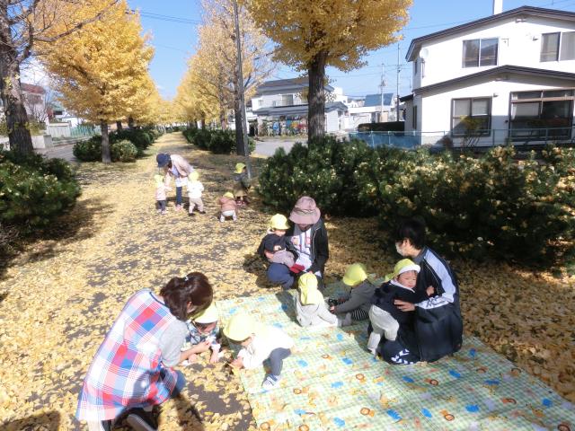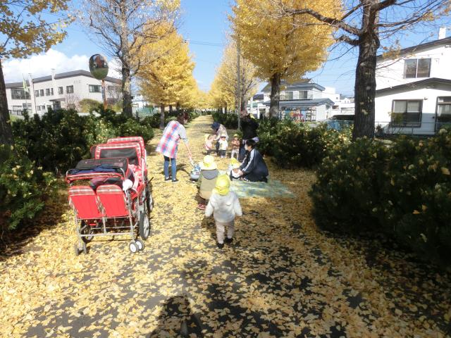イチョウ並木の黄色い絨毯がとってもきれいでした。