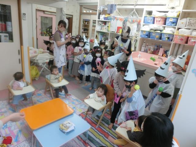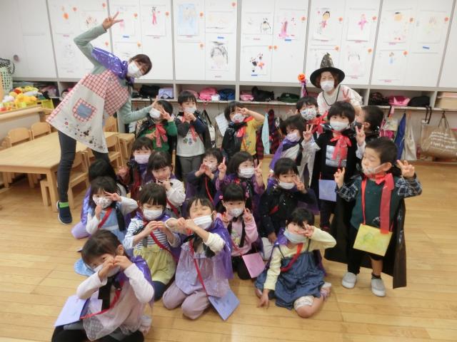 お誕生会終了後は、ちゅうりっぷ・さくら・すみれぐみのお友だちが楽しみにしていたハロウィーンを行いました。