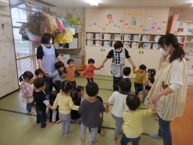 つくしぐみは、みんなで体操をしたり”あぶくたった””おせんたく”をして遊びました。