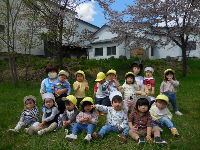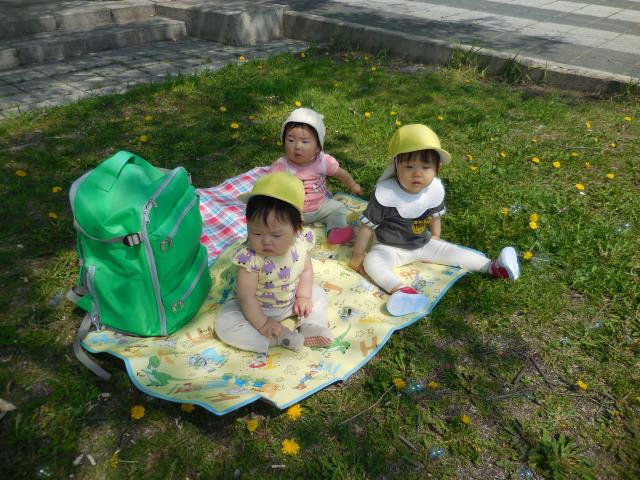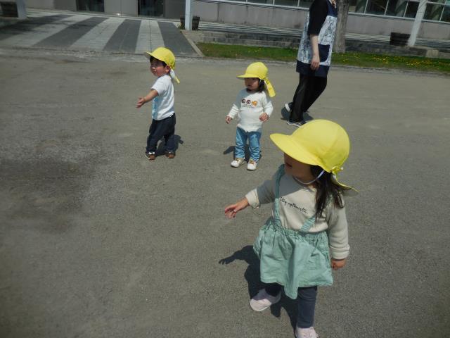 つくしやタンポポが咲いていたり、ちょうちょさんも見つけ、指さしたり近くで見て楽しんでいた子ども達です。