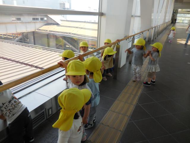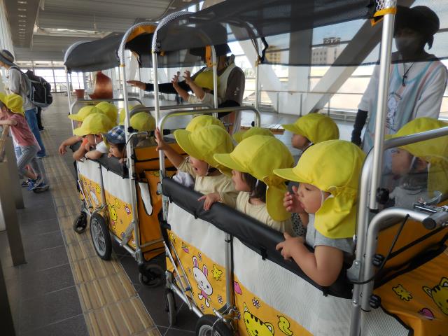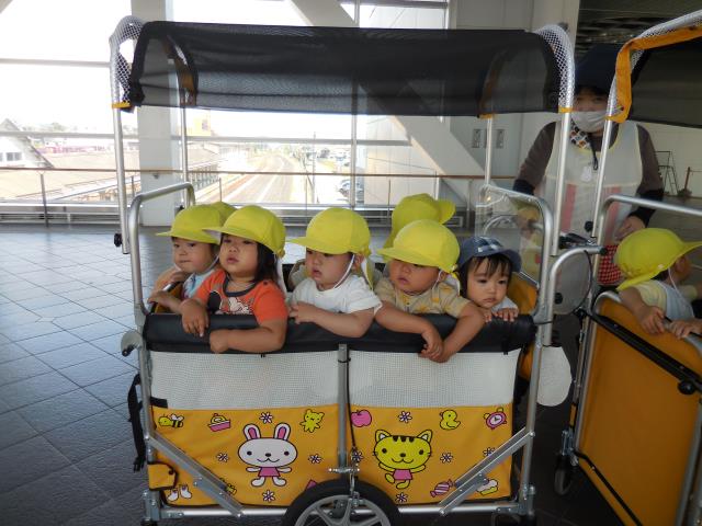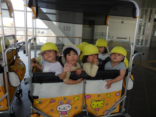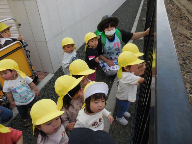 汽車の発車も見て、バイバ~イと手を振って、ニコニコな子ども達でした。