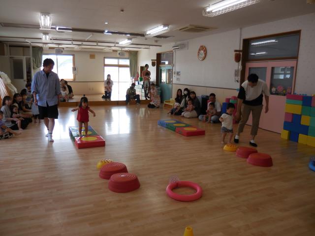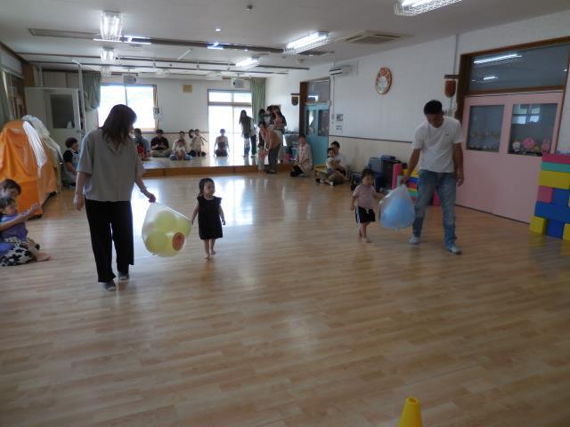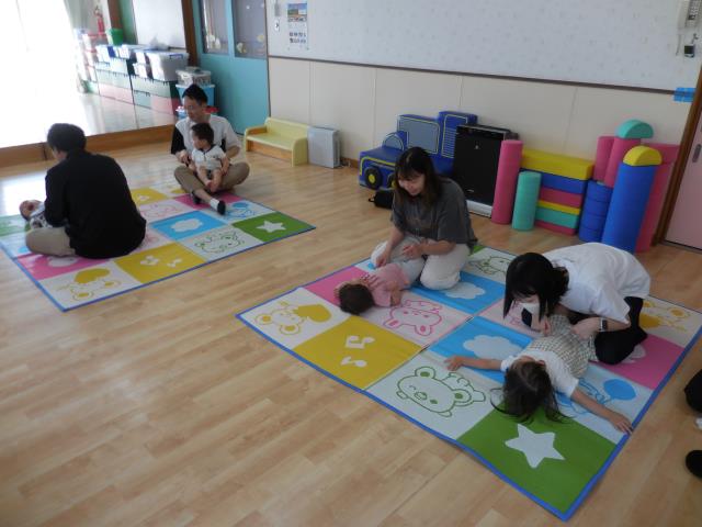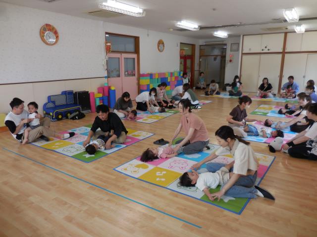 緊張から泣いたり抱っこされたり、いつも以上に張り切る子とそれぞれでしたが、みんなお父さんお母さんとゲームやふれあい遊びをして、とても嬉しそうな表情が印象に残っています。