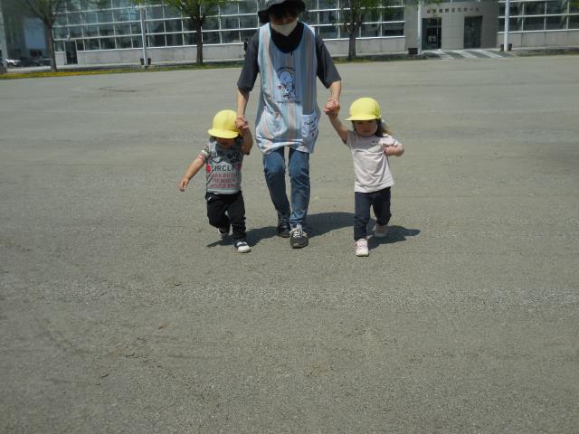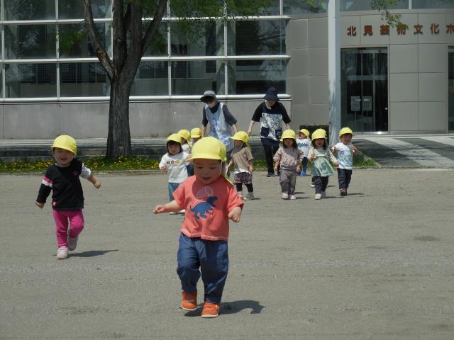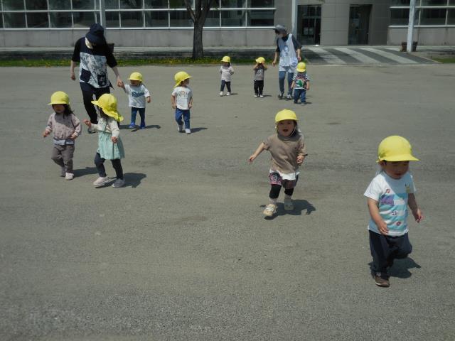 今日のつくしぐみは芸文前広場まで行き、しゃぼん玉遊びをしたり、自由に走りまわったり、ヨーイドン等をして沢山体を動かして来ました。