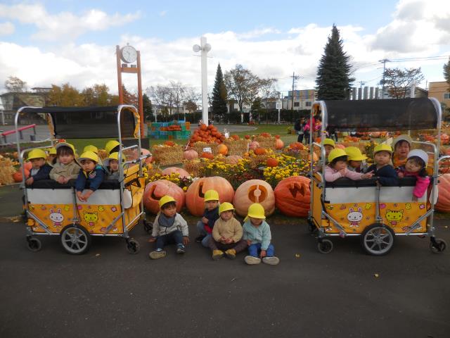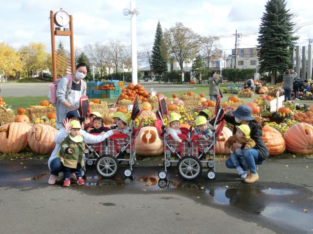 顔のあるかぼちゃを見て「おこってるー!」「あ、ハートがついてる!」等楽しんで見てきました。