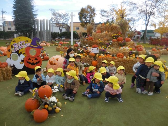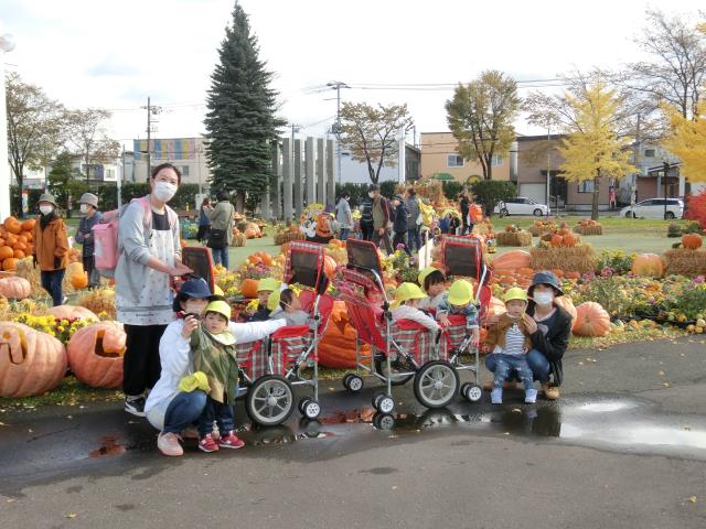 今日はさくらぐみ・ちゅうりっぷぐみが、仲良く手をつなぎ一緒に芸文前広場のハロウィーンフェスティバルへ行ってきました。