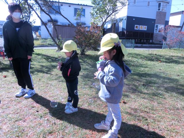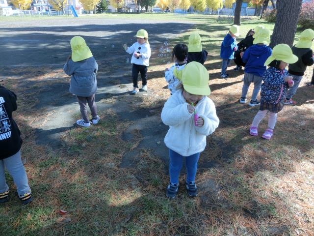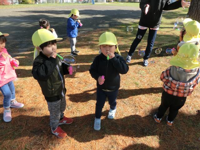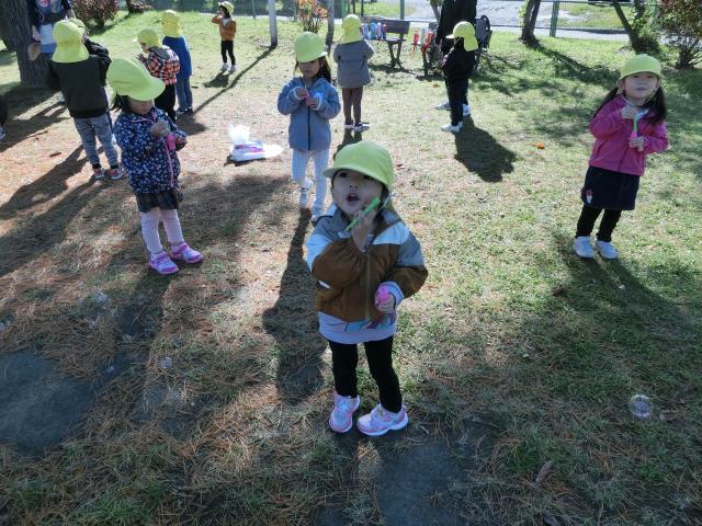 その後は、なかよし公園へ行って、しゃぼん玉を楽しんできました。
