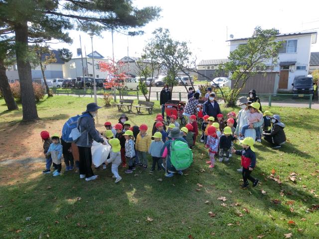 公園では『やきいも』に向けて落ち葉拾いをしています。