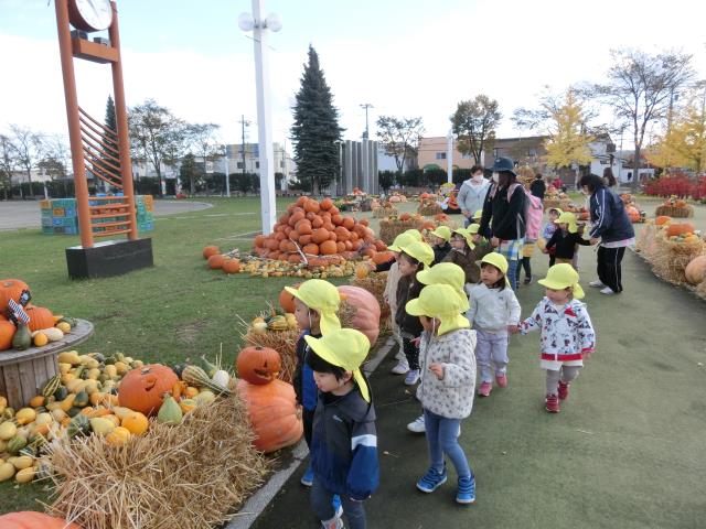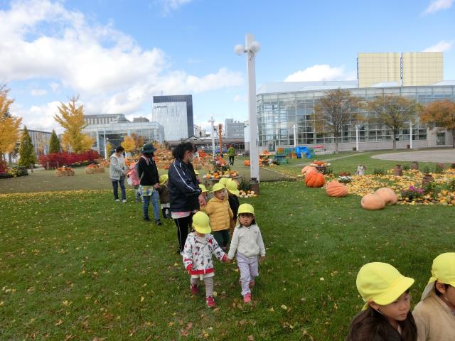 今日のたんぽぽぐみは、ハロウィーンのかぼちゃを見に、芸文前広場とプロムナードへ行ってきました。