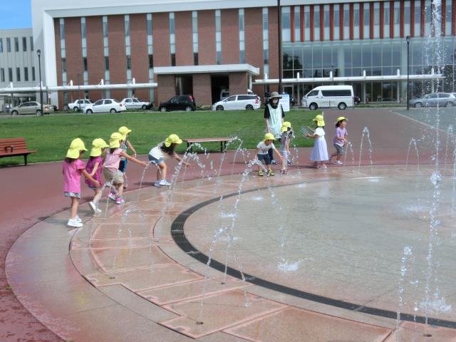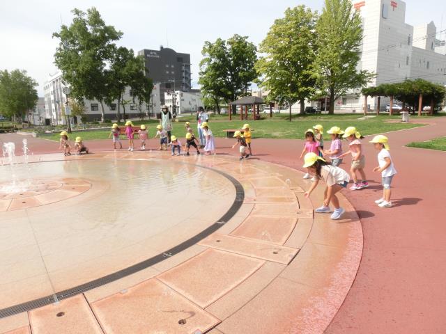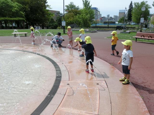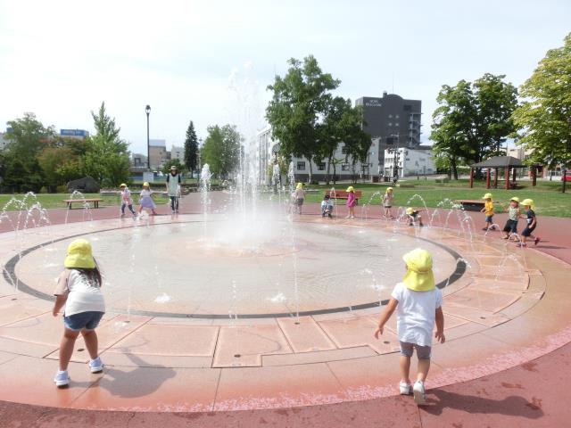 園内の噴水に大喜びの子ども達。