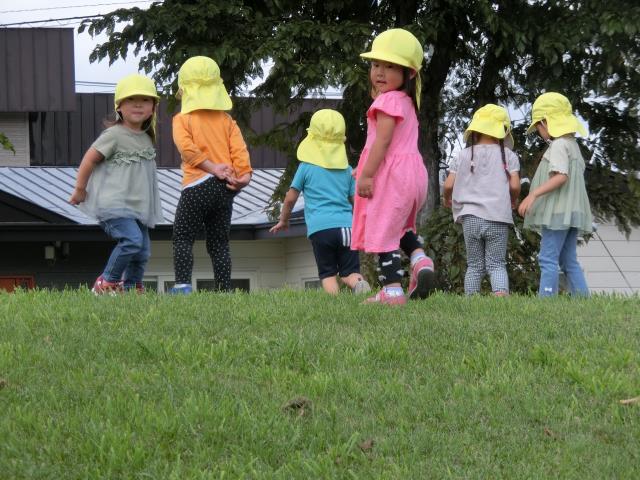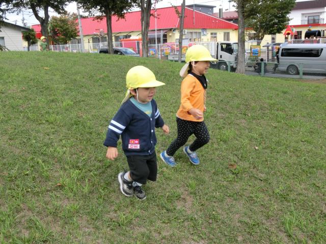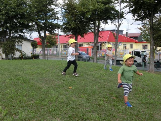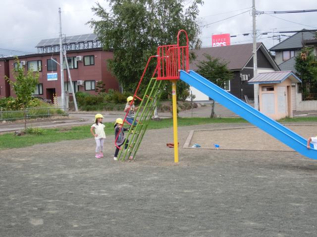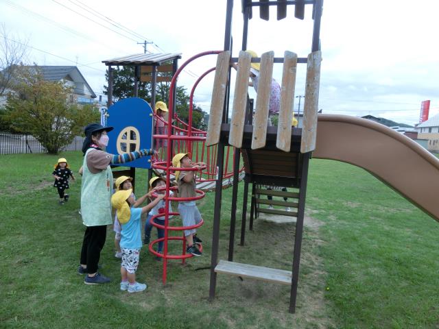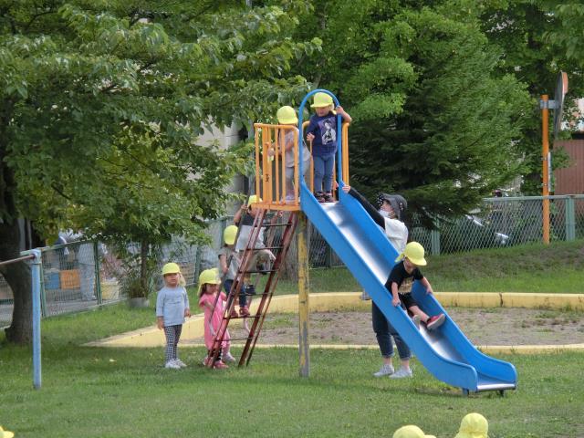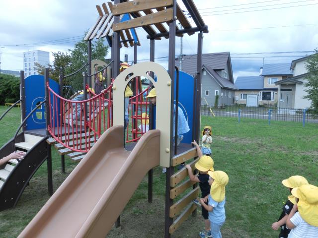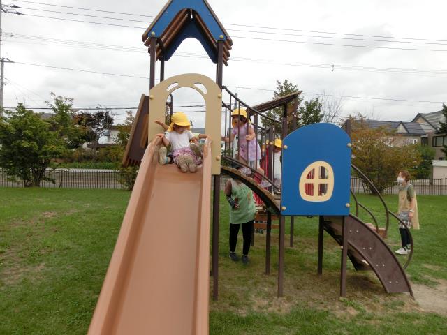 すべり台を楽しんだり、先生を追いかけて楽しみましたよ!