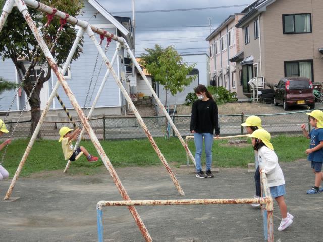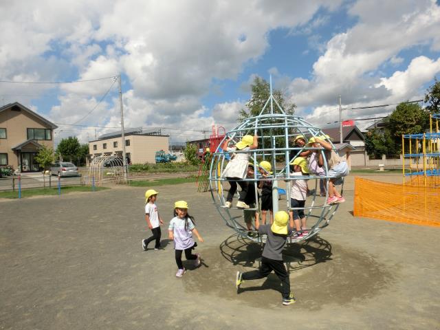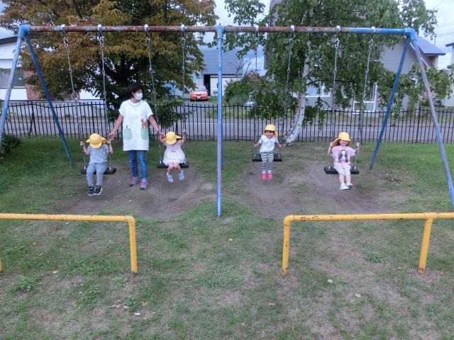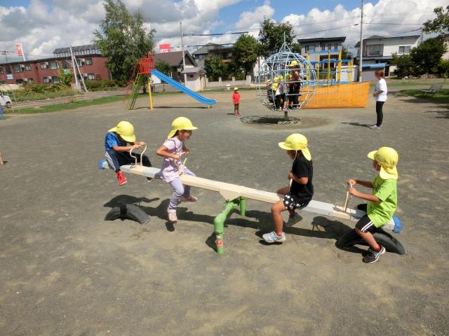 白樺公園では、シーソーやブランコ、地球儀の遊具で楽しく遊んできました。
