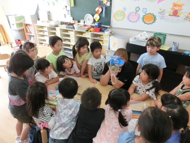 たくさんのとんぼやクモを見て、喜んでいました。