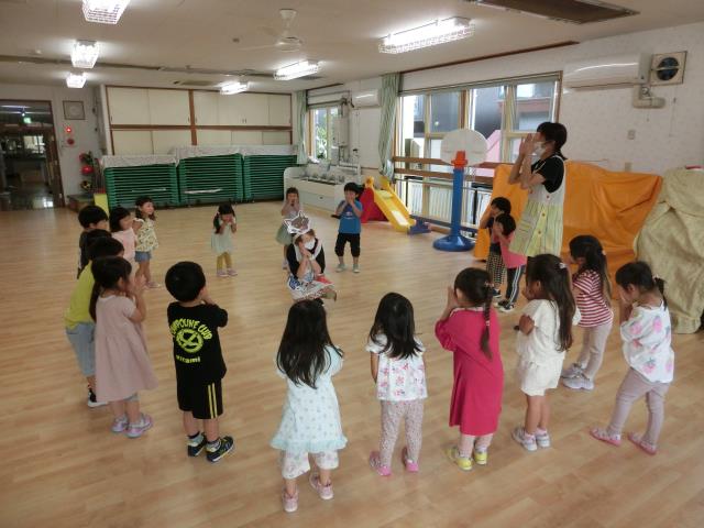 今日のちゅうりっぷぐみは、ホールで集団ゲームをしています。