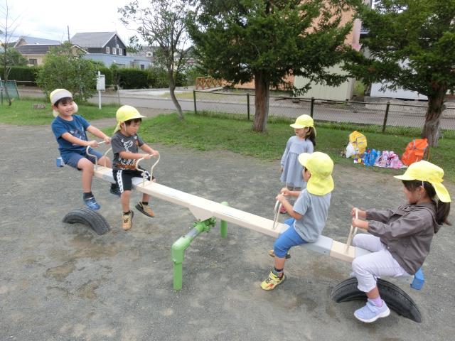公園内のシーソ-は大人気で、順番を守って楽しそうに乗っていた子ども達でしたよ。